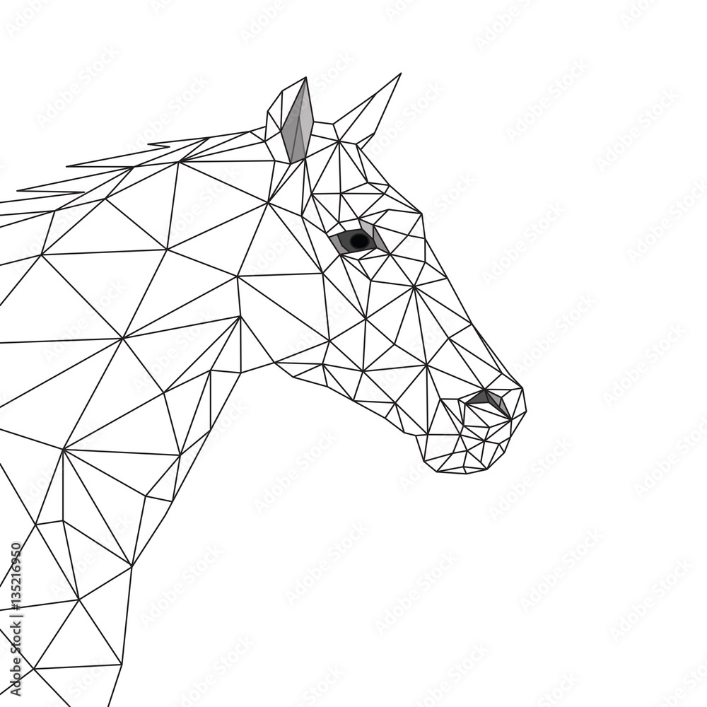 Cavallo Geometrico Testa Di Cavallo Vista Di Lato Design Lineare Di Triangoli E Poligoni Sullo Sfondo Bianco Stock Vector Adobe Stock